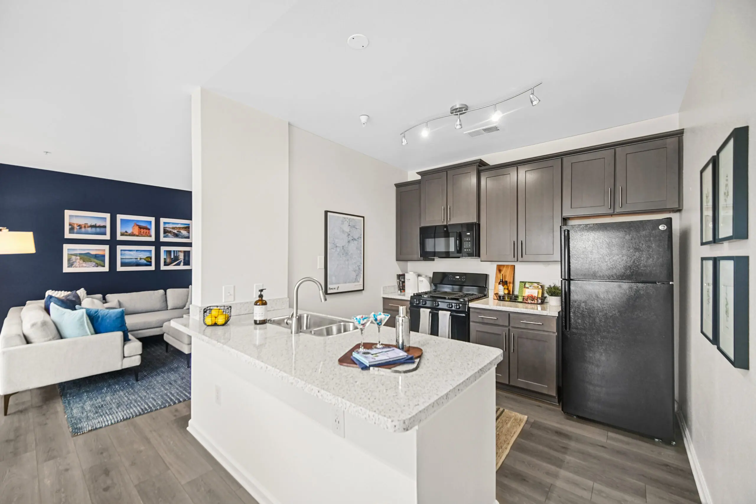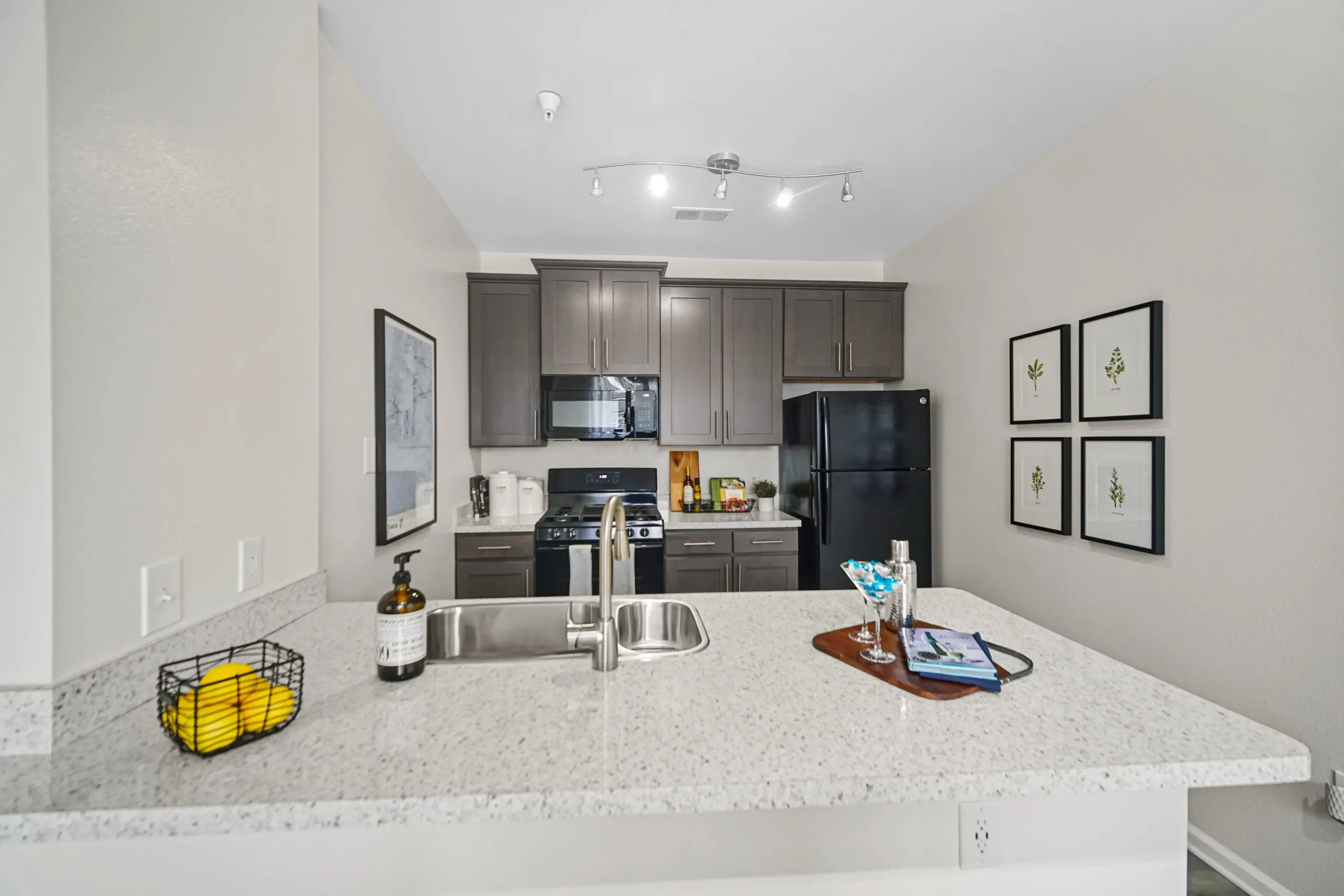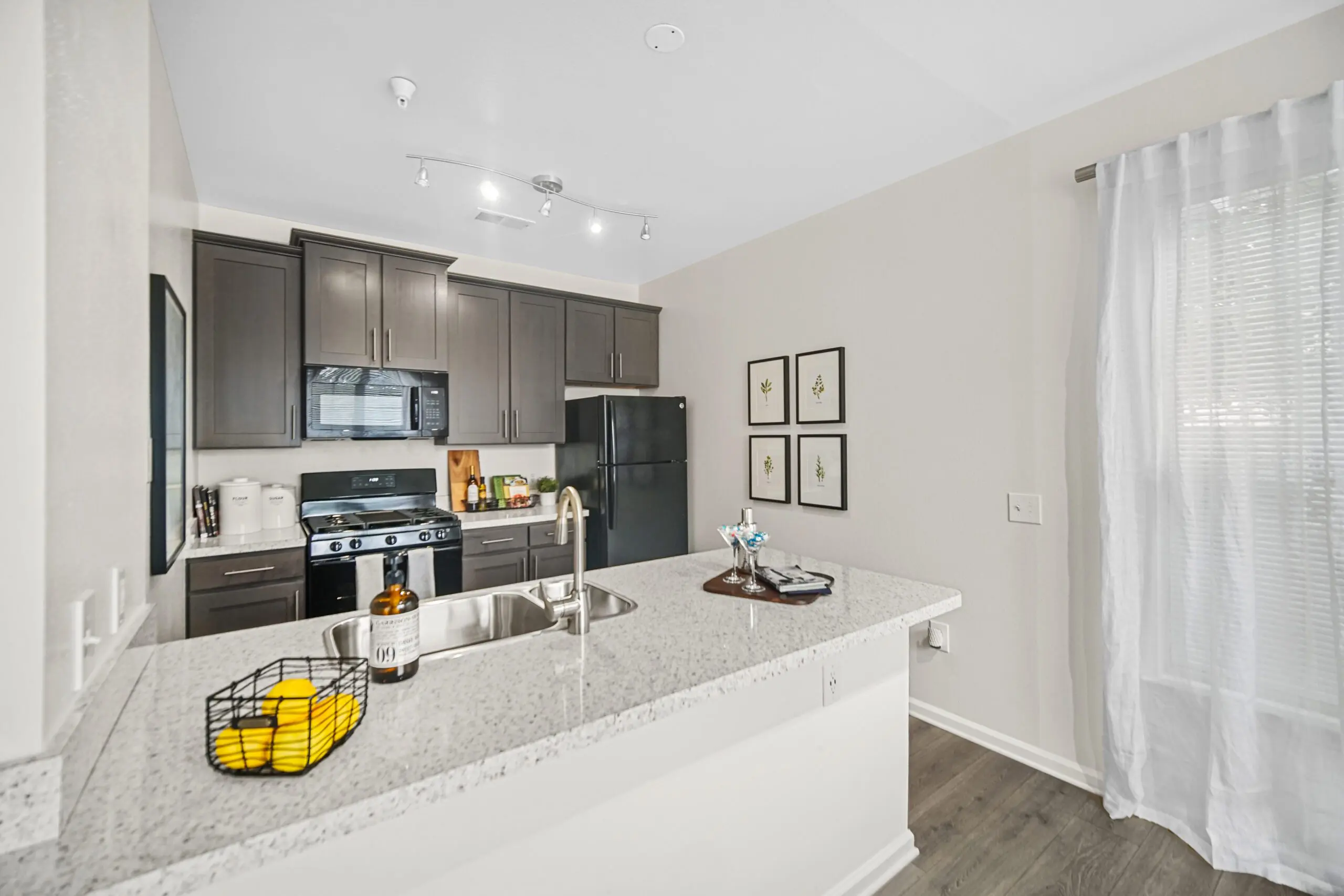 Our expansive 1- and 2-bedroom apartment homes feature fully-equipped gourmet kitchens with gas stoves, ample closet space, high ceilings, full-size washer and dryer, and other high-end details. Select apartment homes offer gas fireplaces.